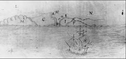Figura 5 – Apresenta a costa do Natal, Africa do Sul, visualizada por D. João de Castro de bordo da sua Nau