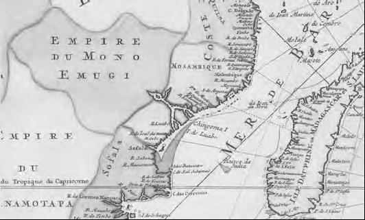 Já no século XVII, há uma carta francesa a cores que localiza “Mosambique e Sofala”, mas o interior do país continua a ser ignorado na Europa (figura 8).