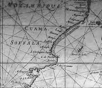 Mas o interior continuava quase ignorado pelos cartógrafos, pois, exceptuando o rio Cuama e suas vizinhanças, com indicações sobre Sena e Tete, alguns rios como o Chinde, Luane, Lourenço Marques, Tembe e localizações de algumas minas de ouro, a maior parte são informações imaginárias, pouco ou nada de concreto apresentam. Curioso é o facto de indicar vários locais com a observação ”Cafres alliés des Portuguais”.