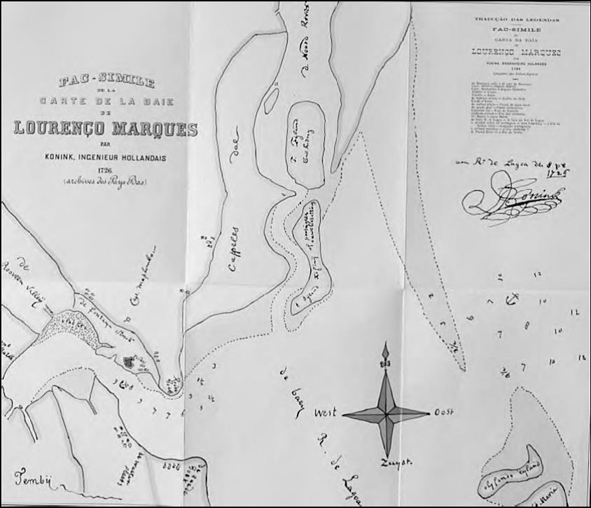 Ainda no século XVIII, mais precisamente em 1726, o engenheiro holandês Konink desenhou a baía do Espírito Santo, junto a Lourenço Marques. Nessa época, estes holandeses estavam estacionados na costa sul da baía do Espírito Santo ou baía da Lagoa, que mais tarde veio a originar o termo inglês “Delagoa Bay”.