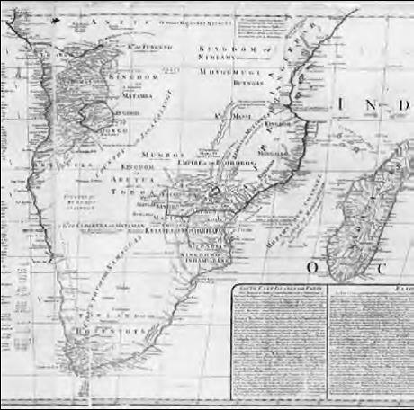 Talvez seja oportuno observar que a Europa e seus cartógrafos, ao representar esta parte de África, apenas inscrevem como informações cartográficas os interiores correspondentes a Angola, na costa Oeste, e a Moçambique, na costa Leste, e uns pequenos traços na região do Cabo. Sem dúvida, estas regiões eram as mais percorridas pelos informadores de que se serviam os mesmos cartógrafos, portanto, colonos portugueses que desbravaram estas regiões e transmitiram para a Europa esses conhecimentos. Na Ilha de Madagáscar, desde 1897 ocupada pelos franceses, a quem se deve a transmissão desses conhecimentos para efeitos cartográficos.