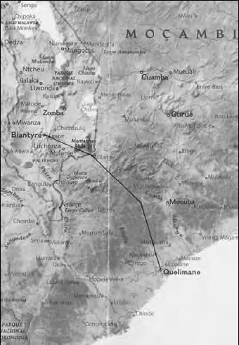 Figura 18 – Percurso desde o Lago Amaramba até à Ilha de Moçambique, segundo mapa actual (Revista National Geographic)