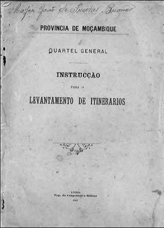 Na Província de Moçambique (África Oriental Portuguesa), desde 1907, que o “Levantamento de Itinerários” estava regulamentado, conforme brochura emitida pelo Quartel-General da Província, cuja capa e seu conteúdo são apresentados por considerarmos serem curiosos.