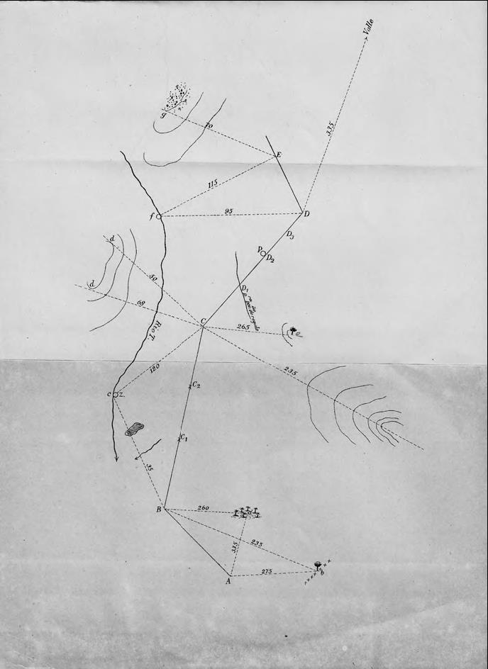 Por este mesmo Stucky foi sendo elaborado um levantamento expedito de toda a campanha, de que resultou o esquema da figura 24, o qual possivelmente deu origem a que a regulamentação difundida mais tarde pelo Quartel-General de Moçambique, em 1907, sobre reconhecimentos militares, possa ter seguido os ensinamentos deste Stucky que, após esta operação contra o Mataca, em 1899, os entregou ao respectivo comandante.