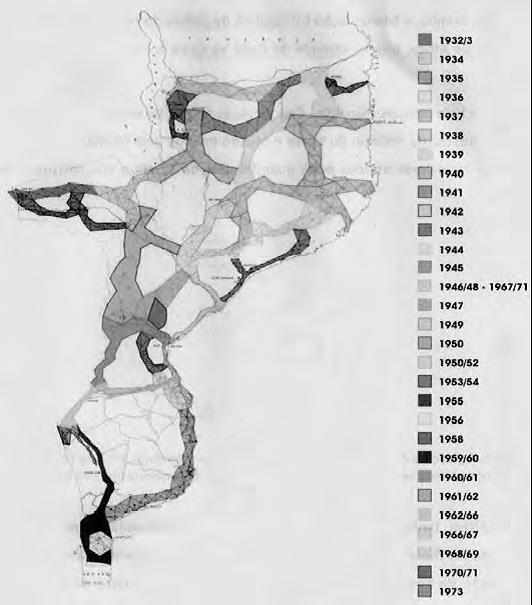 Figura 36 – Triangulações geodésicas executadas em Moçambique, entre 1932 e 1973