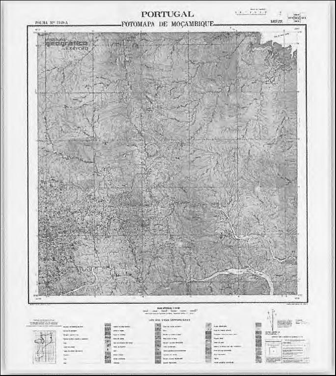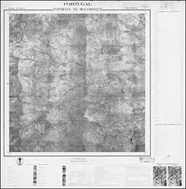 Os fotomapas provisórios tinham o aspecto da figura 38. Quando tratados pelo Serviço Cartográfico do Exército (controlo topográfico), estes elementos passavam a ter o aspecto melhorado como se vê na figura 39. Outro exemplo de um fotomapa definitivo (figura 40), a folha de Mieze, entre o rio Lurio e a Baía de pembe (Porto Amélia).