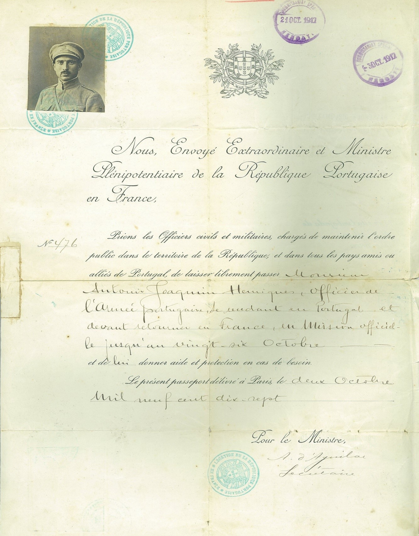 Fotografia n.º 8: Passaporte diplomático de António Joaquim Henriques (1889‑1979), Capitão em 1917