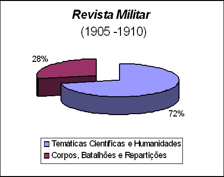 O Gráfico n.º 3 regista 54% de artigos relacionados com as temáticas militares, (Corpos, Batalhões e Repartições) enquanto que 46% referem-se às Temáticas Científicas e de Humanidade. Há um predomínio claro dos artigos de cariz militar em relação aos artigos de conteúdo que servem à instituição militar e à sociedade civil.