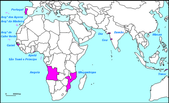 - Na Ásia: Estado da Índia e Macau e respectivas dependências;