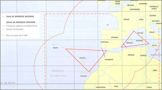 Actualmente o território português apresenta uma configuração triangular, com vértices nos Açores, Madeira e Continente, e é normalmente denominado de Triângulo Estratégico Português. Localiza-se numa das áreas de maior confluência de tráfego marítimo do mundo, sendo que permite controlar ou proteger as rotas marítimas que ligam o Norte da Europa e o Mediterrâneo com a África e Médio Oriente, conferindo projecção mundial e inegável importância estratégica ao território português. As suas principais funções estratégicas estão ligadas ao reforço rápido do teatro de operações Europeu e aos conceitos de defesa avançada dos Estados Unidos da América (MDN, 1986; Martins, 1991).