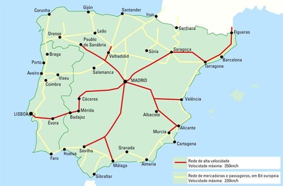 76 A ligação Lisboa (ou Porto)‑Aveiro-Viseu-Salamanca-Valhadolid-Bordeaux-Paris permite ligação mais curta e rápida ao centro da Europa.