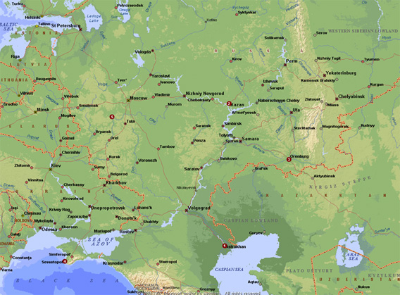 O homem a quem os russos devem a sua liberdade face à opressão mongol foi Ivan III, “o Grande”, príncipe de Moscovo, no final do século XV. A máquina de guerra mongol, tão temida no início, tinha entretanto perdido a vontade e o gosto de lutar, acomodando-se e não sendo já invencível. O poderoso império de Genghis Khan colapsou no Ocidente, ficando reduzido apenas a três “khanatos” dispersos: Kazan (2, Fig. 1), Astrakhan (1, Fig. 1) e Crimeia. Ivan IV, “o Terrível”, um dos sucessores de “o Grande”, reconquistou os dois primeiros (1553 e 1555), anexando-os a Moscovo, que se expandia rapidamente, com a finalidade de evitar invasões, recolher as produções e capturar populações para vender como escravos. Apenas restou a Crimeia como último reduto tártaro, em virtude de ter a protecção do Império Otomano, que via nele um importante baluarte contra os russos. Foi a partir do Principado de Moscovo que, a partir de meados do século XIV, com a derrota dos tártaros na batalha do rio Ugra (5, Fig. 1), se foi cimentando e alargando o Império Russo. A ameaça mongol tinha assim sido eliminada, deixando o caminho aberto para uma das maiores empresas coloniais da história: a expansão da Rússia para Oriente, na Ásia. A partir de 1580, o comércio de peles começou a atrair os russos para a Sibéria, bem para além dos Urais. A expansão russa só terminou quando o Oceano Pacífico foi atingido, sendo comparável em muitos aspectos à conquista americana do Oeste.9 No seu apogeu o Império Russo incluía, além do território russo actual, os estados bálticos (Lituânia, Letónia e Estónia), a Finlândia, Cáucaso, Ucrânia, Bielorússia, boa parte da Polónia (antigo reino da Polónia), Moldávia (Bessarábia) e quase toda a Ásia Central. (Fig. 2) “A História prova que o espaço e a posição têm influído no destino político de cada território (...) O espaço, quando existe, cria a grande potência.”10