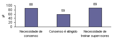 Os representantes das organizações de trabalhadores eram os mais propensos a concordar que os supervisores e quadros não tinham competências suficientes para identificar problemas relacionados com álcool e drogas nos trabalhadores. Todos os grupos concordavam que a formação de supervisores era essencial para uma política de álcool e drogas eficaz.