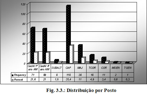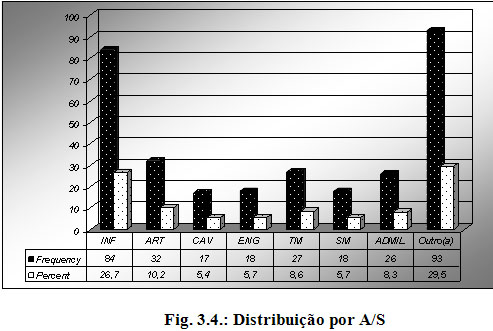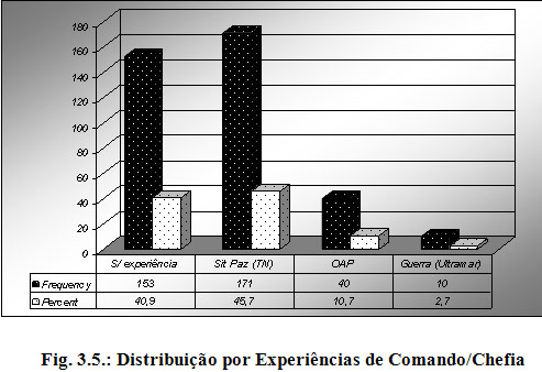 34 Embora uma eventual opção em não considerar postos hierarquicamente inferiores a Capitão pudesse apresentar vantagens ao nível da homogeneidade dos resultados, decorrente da relevância das experiências pessoais e da maturidade profissional (no momento da recolha da informação), um alargamento do universo aos oficiais subalternos e aos cadetes (futuros oficiais), ainda em curso na Academia Militar, teve a vantagem de aumentar a base de recolha de informação e abrir outras perspectivas em termos de análise e interpretação dos resultados (contribuindo, por exemplo, para uma qualidade superior em termos de compreensão do papel da experiência profissional ao longo da carreira); por outro lado, o software que hoje existe no mercado permite contornar alguns inconvenientes e maximizar o uso da informação recolhida.