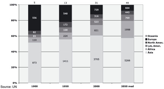 Olhando para as tendências demográficas e baseando nos nas projecções da ONU, verificamos que es­ta­mos a assistir, por via de dinâmicas próprias, quer devidas à fertilidade, quer como resultado da variação na esperança de vida, a uma redistribuição da população pelos vários espaços continentais.