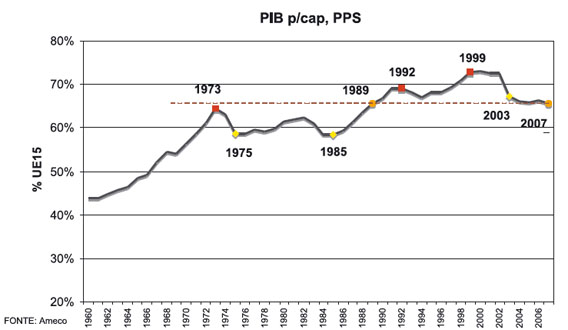 Entretanto e praticamente desde pouco depois de se ter instituído a União Monetária, Portugal não deixou de divergir economicamente da Europa, empobrecendo em termos relativos.