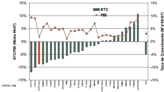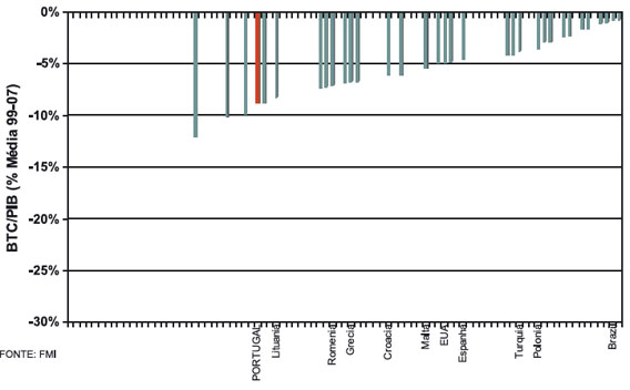 Se tirarmos da comparação os países que são micro-economias, ou economias muito débeis, Portugal é o país do Mundo que apresenta o valor mais elevado de défice externo, em relação ao PIB, na média do período entre 1999 e 2007. Outros países nos acompanham neste registo, como é o caso da Estónia, da Letónia e da Islândia. A diferença fundamental é que estes países experimentaram um crescimento económico elevado, da ordem dos 9, 10 por