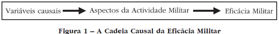 Os principais estudos de referência publicados sobre eficácia militar no contexto estatal, centram a sua atenção na forma como factores sociais, políticos e culturais moldam a capacidade da entidade Estado em usar recursos materiais, e não só, na criação de poder militar62. A tónica geral assenta na complementaridade, ainda que conceptualmente distinta, entre o estudo da eficácia militar e a análise do poder material.