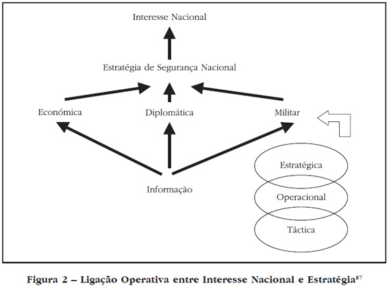 É neste patamar que se elabora, discorre e materializa aquilo que se vulgarizou chamar de “arte estratégica” e entendida como a “competente formulação, coordenação, e aplicação dos recursos e dos meios necessários à promoção e defesa dos interesses nacionais”89.