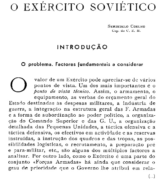 Para nós militares portuguezes, a guerra do Oriente é uma grande lição e talvez um grande conselho. As allianças não bastam para defender os paizes pequenos. Os poderosos ás vezes não querem conquistar, basta-lhe proteger os paizes pequenos.