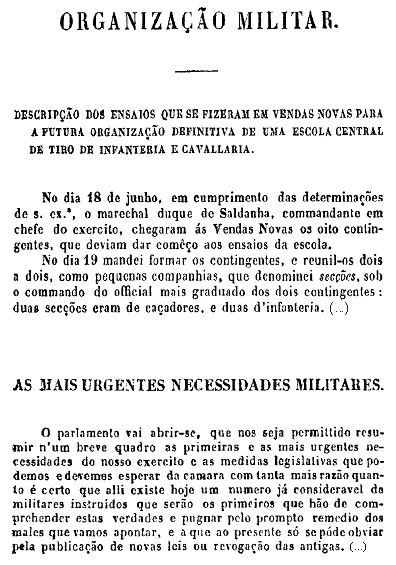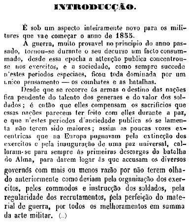 Em Janeiro, na INTRODUÇÃO, salienta-se, “É sob um aspecto inteiramente novo para os militares que vae começar o anno d 1855.