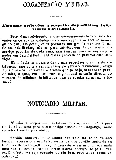 (...) Mas nos tempos d’outr’ora, quando a vida dos quarteis decorria em uma athmosphera de mutua desconfiança, aguardando-se a todo o instante novo movimento revolucionario, as paginas d’este jornal jámais se tornaram echo de outros sentimentos que não fossem os do appello á concordia e do incitamento á subordinação.