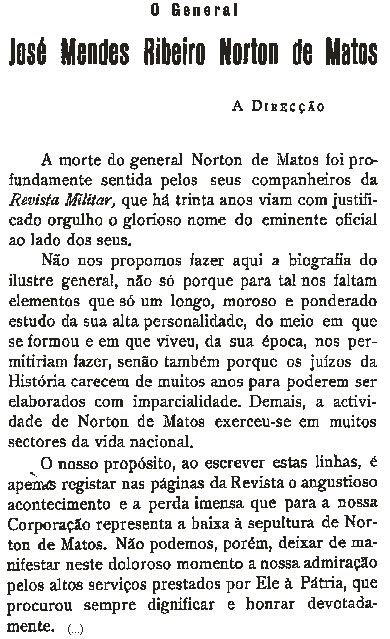 Em 1955, no Inverno de há cinquenta anos, o número de Janeiro apresenta o In Memoriam do General Norton de Matos, dizendo A Direcção: “A morte do general Norton de Matos foi profundamente sentida pelos seus companheiros da Revista Militar, que há trinta anos viam com justificado orgulho o glorioso nome do eminente oficial ao lado dos seus.
