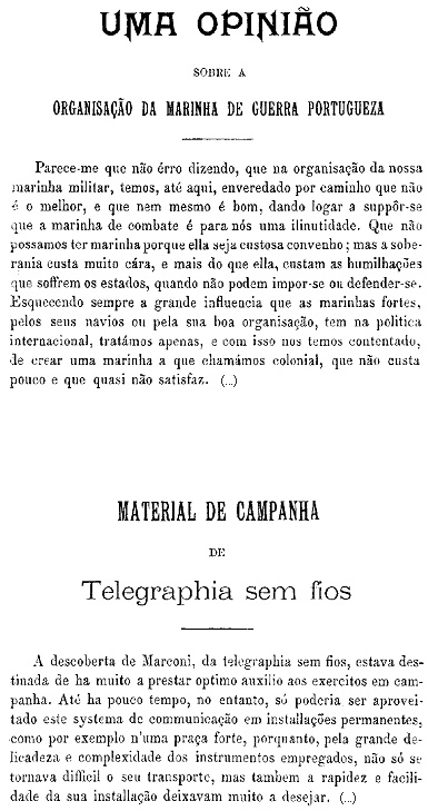 “A Revista Militar entra com o presente numero em uma nova epoca da sua existencia.