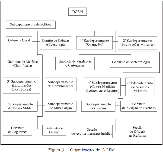 No DGEM existem três Sub-departamentos bastante importantes: os Segundo e Terceiro (Informações) e o de Operações. Os dois Sub-departmentos de Informações constituem-se como uns dos principais órgãos de recolha e análise de informação, não apenas a nível militar, mas também a nível estratégico e de política externa. O Segundo Sub-departamento possui vários gabinetes, incluíndo o de análise internacional, bem como uma célula em cada Região Militar que lhe transmitem informações directamente.