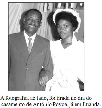 A fotografia, ao lado, foi tirada no dia do casamento de António Povoa, já em Luanda. Pensamos que não seria o seu primeiro casamento. A correspondência, que trocámos até 1995, é testemunha de uma amizade recíproca. Depois de todos estes anos, temos muita dificuldade em aceitar que, alguma vez e propositadamente, o António Povoa quisesse deliberadamente prejudicar-nos. Apesar disso, ele sempre soube que a sua gente disputou, utilizando todos os argumentos, segundo os zombo válidos, as instalações ‘abandonadas’ pelos comerciantes europeus do zombo.