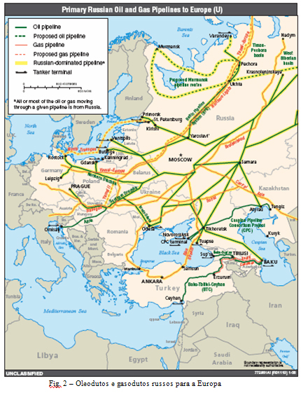 Com os oleodutos e gasodutos que a ligam à Europa como um cordão umbilical, a Rússia tem uma influência e um poder sem precedentes que ultrapassam o poder e a influência militares que a URSS teve durante a “guerra fria”. Apesar do arsenal nuclear de que dispunha, não o podia utilizar porque sabia que, se o fizesse, seria também destruída.[2] Actualmente, se a Rússia decidir reduzir ou suspender o fluxo de gás à Ucrânia e/ou à Europa, nada a impede de o fazer.