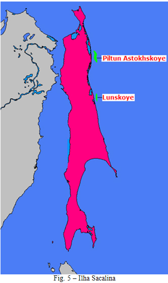 Desde o fim do séc. XIX que existiam provas da existência de petróleo na ilha Sacalina, situada no Mar de Okhotsk, a Norte do Japão (Ver Fig. 5). Porém, devido às condições climáticas extremas e ao trabalho “offshore”, não foi possível explorar aqueles depósitos por si só. Em 1975, as autoridades soviéticas acederam a permitir a exploração de petróleo e gás por empresas japonesas. Esta foi uma das raras ocasiões em que foi permitida a uma empresa estrangeira actividade comercial dentro da URSS. As condições de trabalho na Sacalina são das mais extremas do planeta: o mar está gelado durante a maior parte do Inverno, não permitindo o trabalho e as placas de gelo são um perigo constante para as brocas de perfuração. A Exxon-Mobil resolveu o problemas das placas de gelo perfurando verticalmente em terra firme e, depois, redireccionando o furo horizontalmente sob o fundo do mar. Os russos não tinham tido acesso a esta tecnologia.