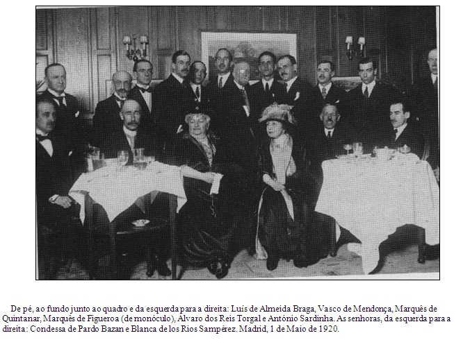 [37] da campanha integralista do projecto «Aliança Peninsular», foi a reunião que o Marquês de Quintanar promoveu e ofereceu a alguns exilados portugueses, no Hotel Ritz em Madrid, que reuniu alguns nomes de destaque do meio literário madrileno, que ficou registada numa fotografia publicada no jornal