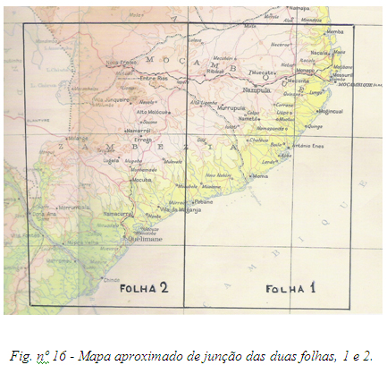 O traçado da rede geográfica em projecção cónica-secante, foi executado na Repartição de Agrimensura.