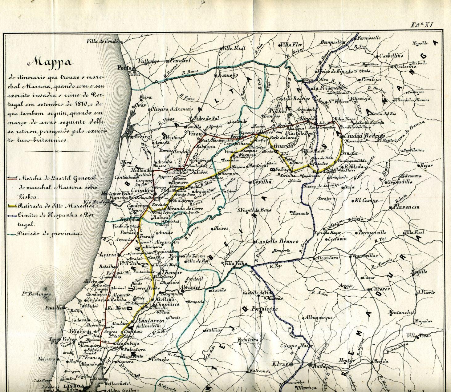 Fig. 1 - Mappa do itinerario que trouxe o Marechal Massena, quando com o seu exercito invadiu o reino de Portugal em Setembro de 1810...