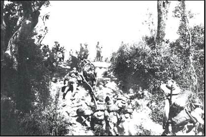 Demoravam em marcha forçada (sem impedimentos de qualquer ordem como por exemplo ataques inimigos ou chuvadas torrenciais), entre quatro a cinco dias, para perfazer entre 50 a 70 quilómetros, com a agravante de terem de levar todo o material às costas. Cabe aqui referir o papel dos carregadores.