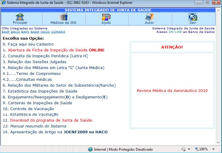 Em 2006, o sistema disponibilizou o acesso aos dados através da rede interna de computadores da Aeronáutica (Intraer), facilitando a visualização das informações pertinentes a cada militar que era inspecionado pela JRS da Base Aérea de Canoas.