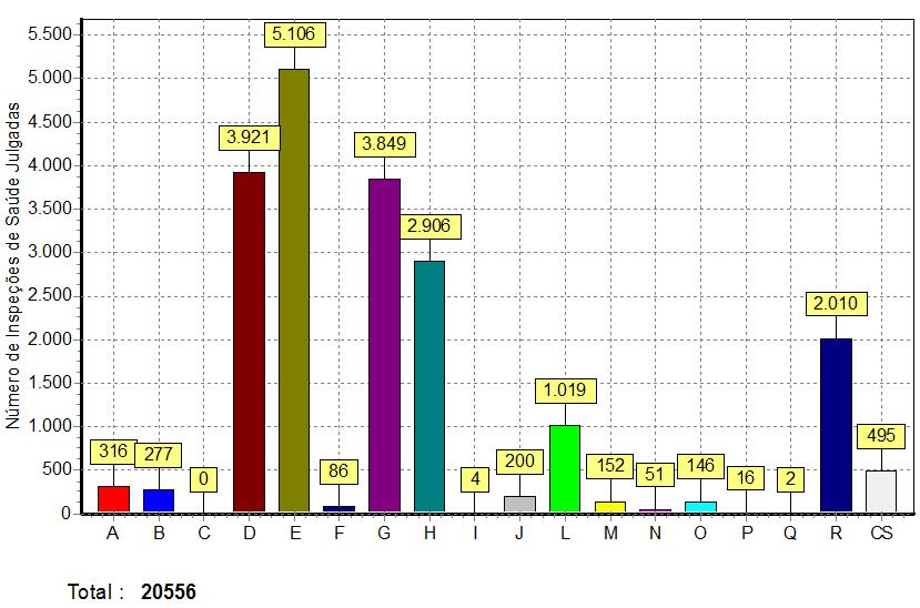 O Sistema Integrado de Junta de Saúde possui um registro de mais de 20.000 inspeções (Figura 3) de saúde homologadas e mais que 8.000 cadastros.