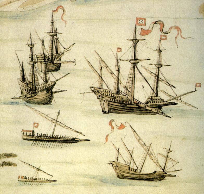 Fig. 2 - Naus, galeão, caravela redonda e galés, numa imagem do Roteiro de D. João de Castro