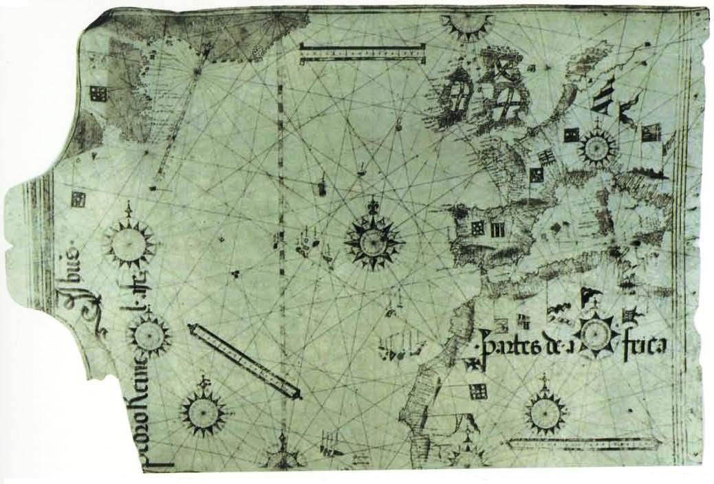 Fig. 5 - Carta de Pedro Reinel com escala de latitudes inclinada (c. 1504)
