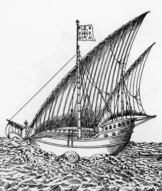 A caravela, ou caravela latina (Fig. 1), esse navio quase mítico que marcou a primeira fase dos Descobrimentos Portugueses, aparece, durante séculos, na mais diversa documentação. Distinguiu-se pela sua versatilidade náutica, pelo que foi decisivo nas actividades marítimas destinadas a conhecer a geografia do nosso planeta. Todavia, na nossa despretensiosa apreciação, foi João da Gama Pimentel Barata quem conseguiu descrever a utilização da caravela de forma tão sucinta quanto definitiva: «Este navio elegante, harmonioso, teve uma vida de cinco séculos, durante os quais foi pescador, comerciante, guerreiro e pioneiro»2.