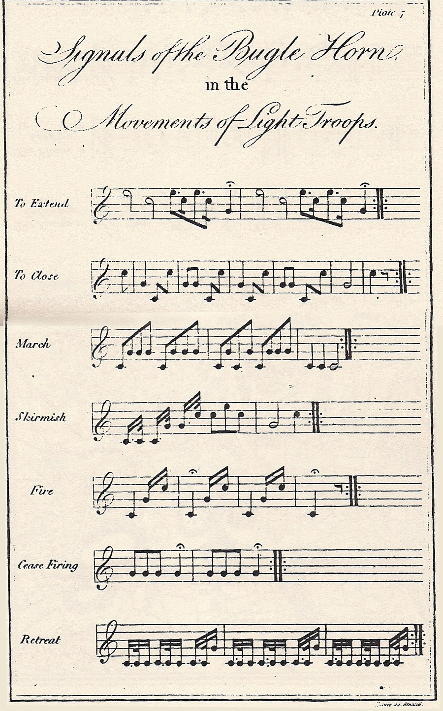 29 “Signals of the Bugle Horn in the Movements of Light Troops in Regulations for the Exercise of Riflemen and Light Infantry and Instructions for their conduct in the field”, Printed for the War Office, 1814.