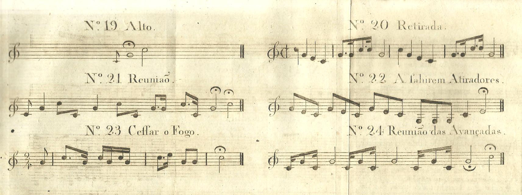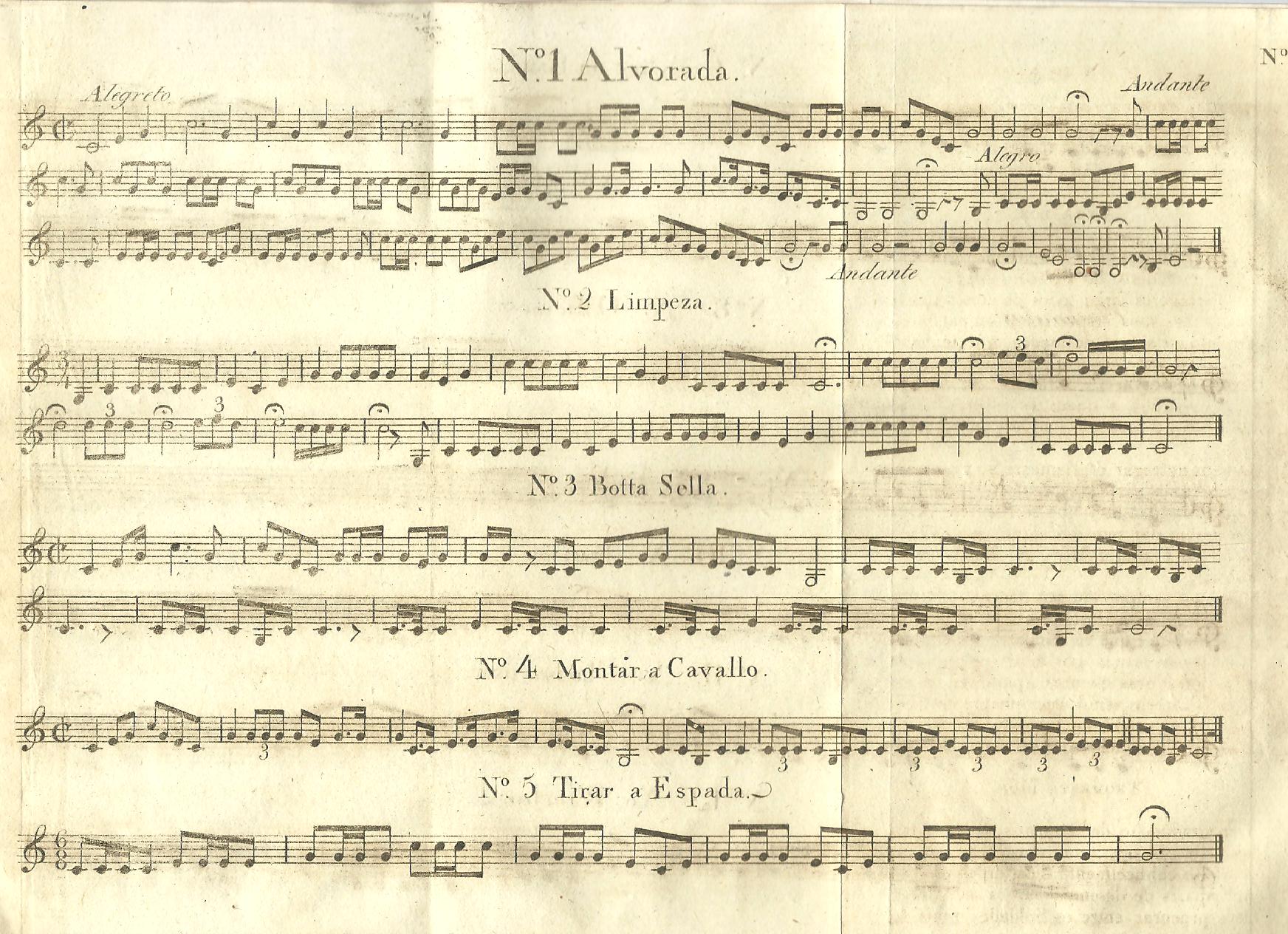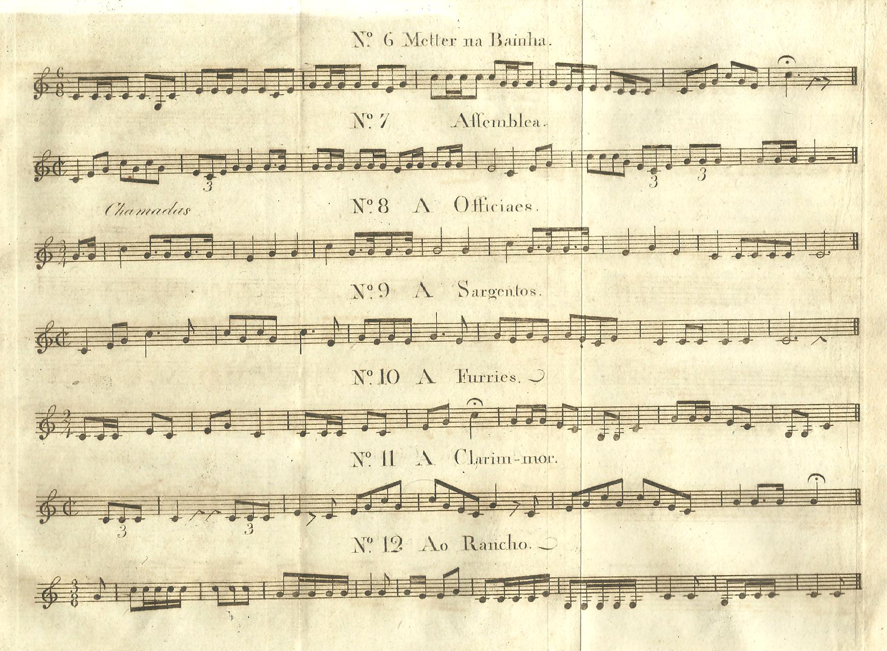 Toques de Clarim regulamentados em 1816 e publicados no Regulamento para a Disciplina e Exercício dos Regimentos de Cavalaria do Exército, Impressão Régia, Lisboa,1825.