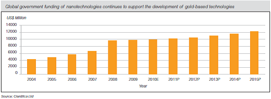 Fonte: World Gold Council in association with Científica; Gold and Nanotechnology in the Age of Inovation