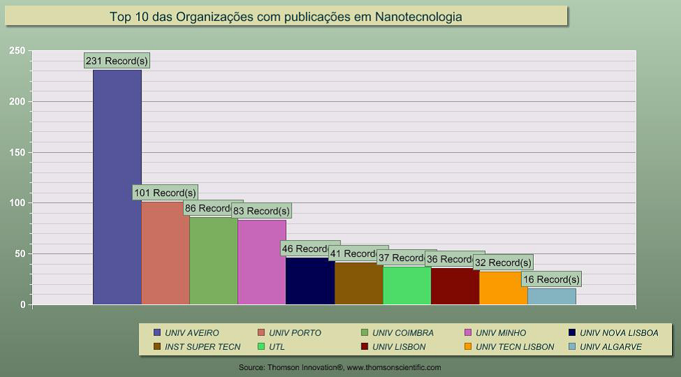 Refere ainda que, à data da publicação, existiam cinco universidades portuguesas com pedidos de patentes (14) na área da NT e 709 artigos publicados.