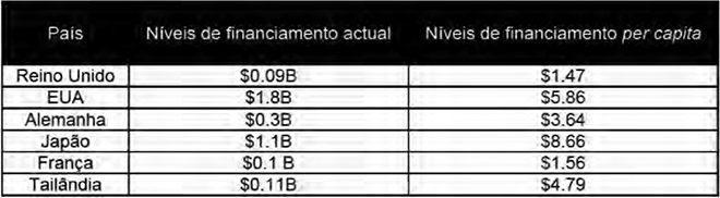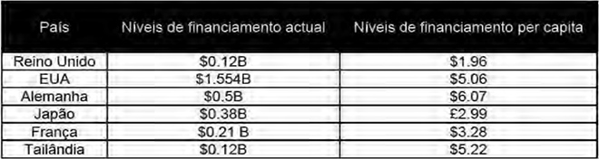 Encontramos também níveis de financiamento do setor público e privado onde se destacam os EUA, Japão e Alemanha.
