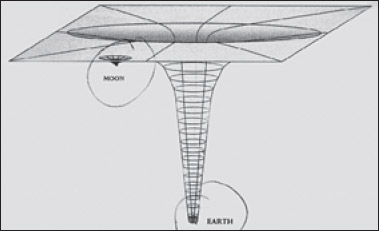 São os poços de gravidade26, ilustrados na figura 1, que materializam os “acidentes orográficos” no Espaço. A sua profundidade depende da massa do corpo que exerce o efeito, ou seja, quanto maior a massa, maior será o poço e a profundidade.