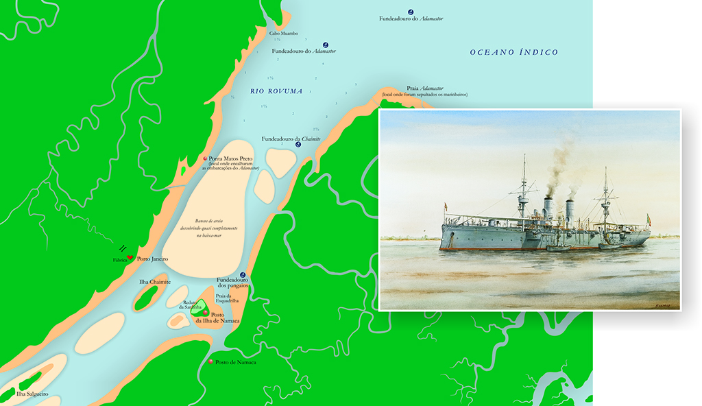 Para ali foram deslocados, primeiro, o cruzador São Gabriel e, depois, as canhoneiras Beira e Ibo que, com dois vapores armados, e utilizados como patrulhas, garantiram a defesa marítima daquele porto.