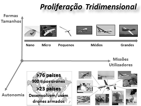 À medida que aumenta a imprescindibilidade operacional, somos confrontados com uma proliferação tridimensional da Guerra Aérea Remota. Ou seja, na diversidade de formas e tamanhos, no alargamento do espetro de missões e de base de utilizadores, e nos níveis crescentes de autonomia a par com a perspetiva de armamentização. É exatamente a irresistibilidade do carácter cirúrgico, não apocalíptico, a custos reduzidos, que torna irreversível a sua proliferação, e que tem efeitos desestabilizadores para as Relações Internacionais.