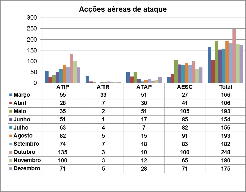 Gráfico 2 – Acções aéreas de ataque, de Março a Dezembro de 1973